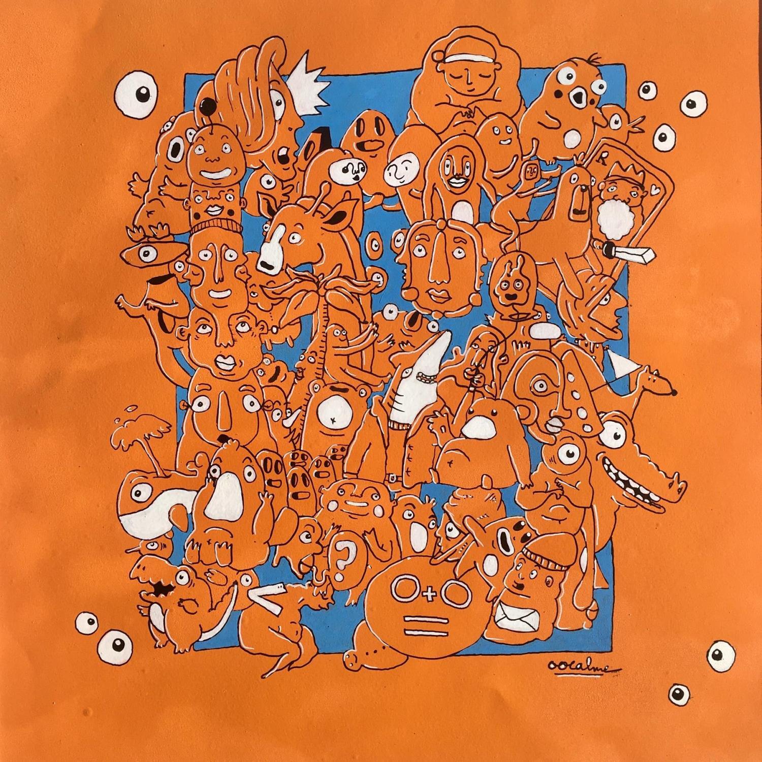 This unique and original contemporary artwork "Orenji" on the subject of Animals has been created by the contemporary artist Oocalme.