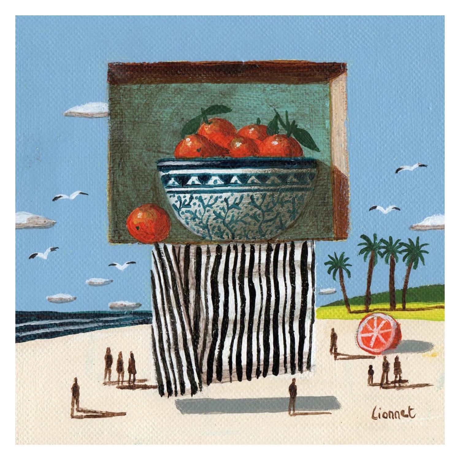 This unique and original contemporary artwork "Oranges et tissu" on the subjects of Life style, Marine, Still-life has been created by the contemporary artist Lionnet Pascal.