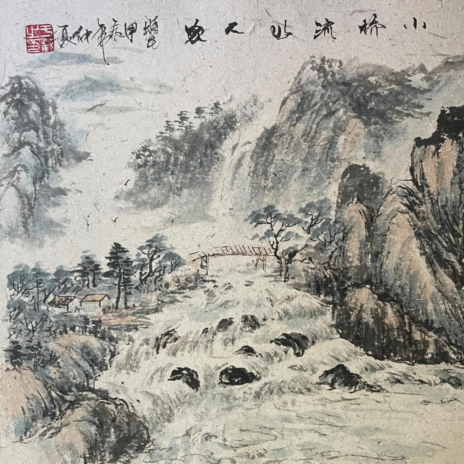 Little bridgePintura Little bridge por Yu Huan Huan | Pintura Figurative Landscapes Nature Black & White Ink