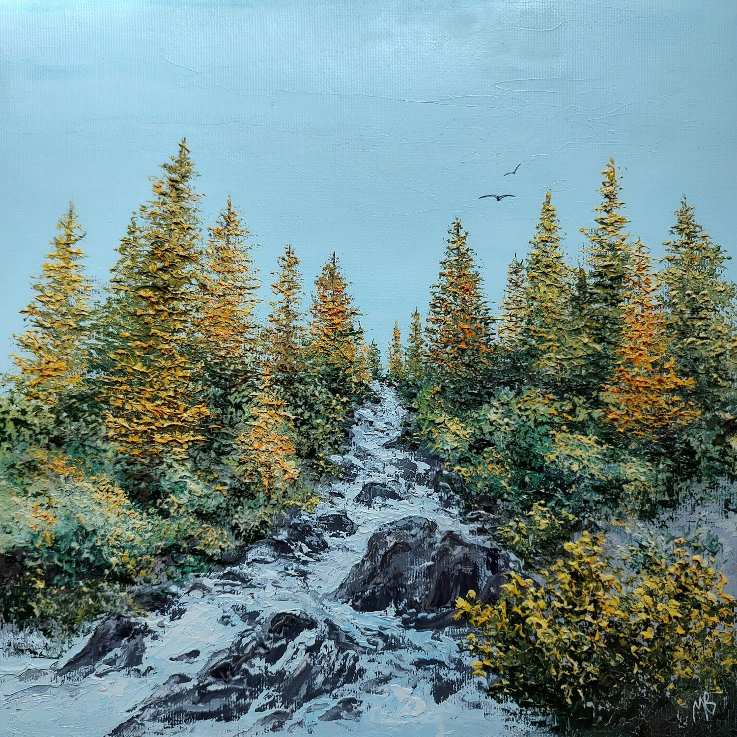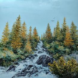 This unique and original contemporary artwork "Cascade des Alpes" on the subject of Landscapes has been created by the contemporary artist Blandin Magali.