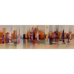 This unique and original contemporary artwork "AO105 Découverte 4" on the subjects of Marine, Landscapes has been created by the contemporary artist Burgi Roger.