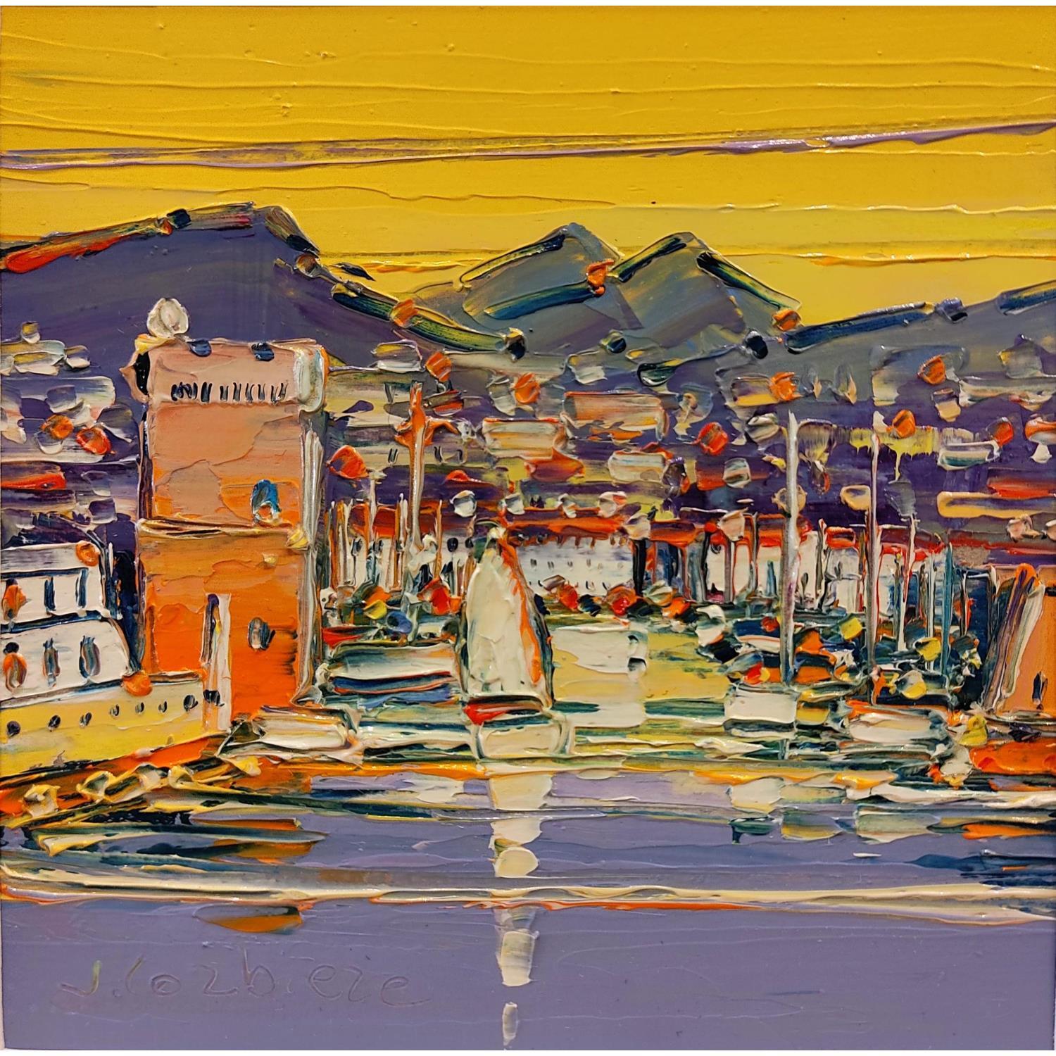This unique and original contemporary artwork "Back to Marseille" on the subjects of Marine, Landscapes has been created by the contemporary artist Corbière Liisa.