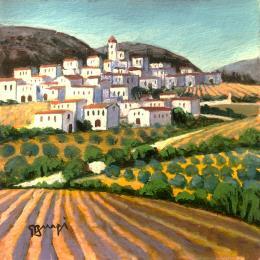 This unique and original contemporary artwork "AP64 VILLAGE AUX OLIVIERS" on the subjects of Architecture, Nature, Landscapes has been created by the contemporary artist Burgi Roger.