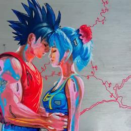 This unique and original contemporary artwork "Son Goku au cœur tendre" was created by contemporary artist Medeya Lemdiya.