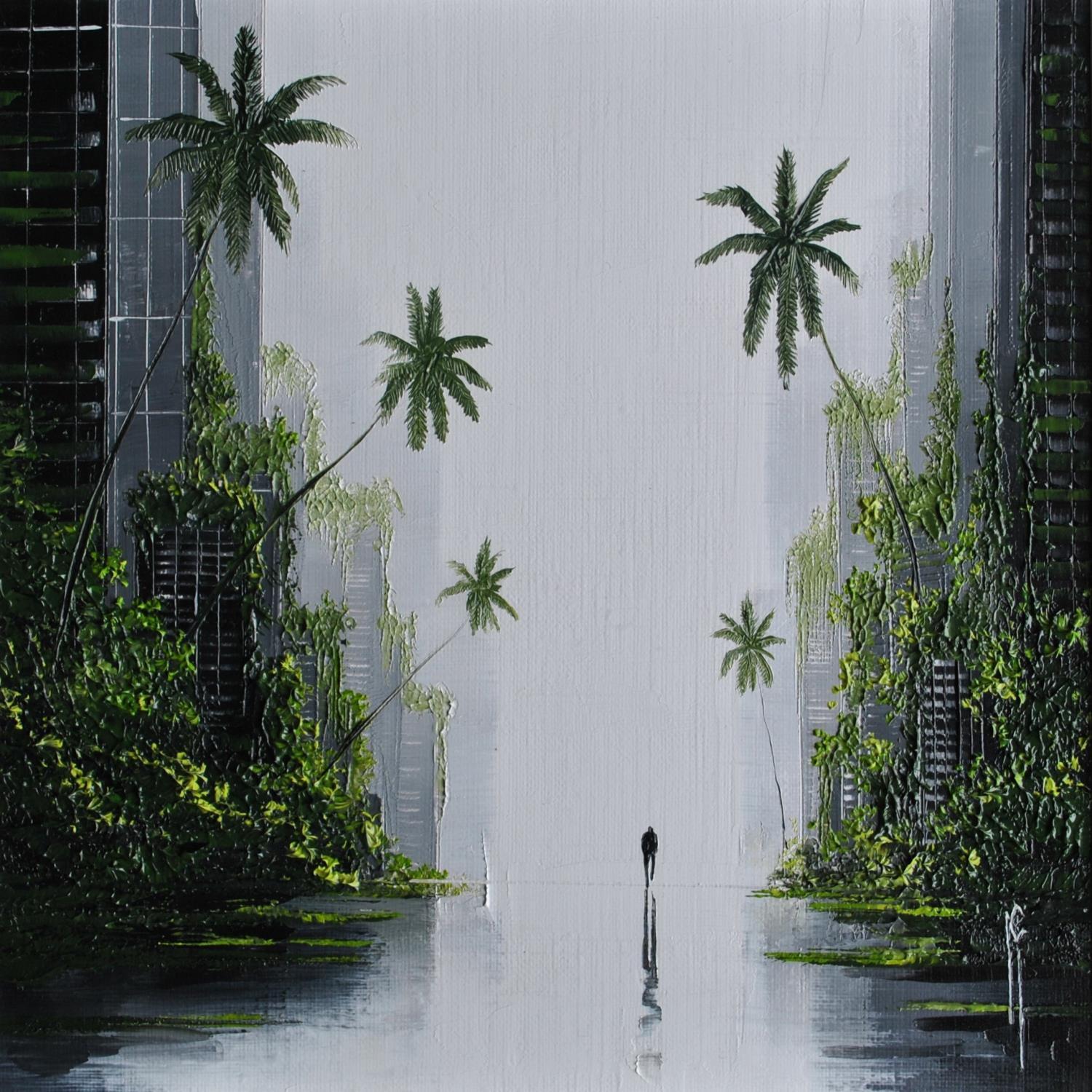 The artist used the Oil technique to create this small-format Figurative-style painting on paper with an Urban theme.