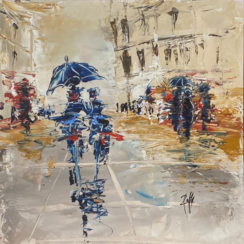 This unique and original contemporary artwork "Sous la pluie" on the subject of Urban has been created by the contemporary artist Raffin Christian.