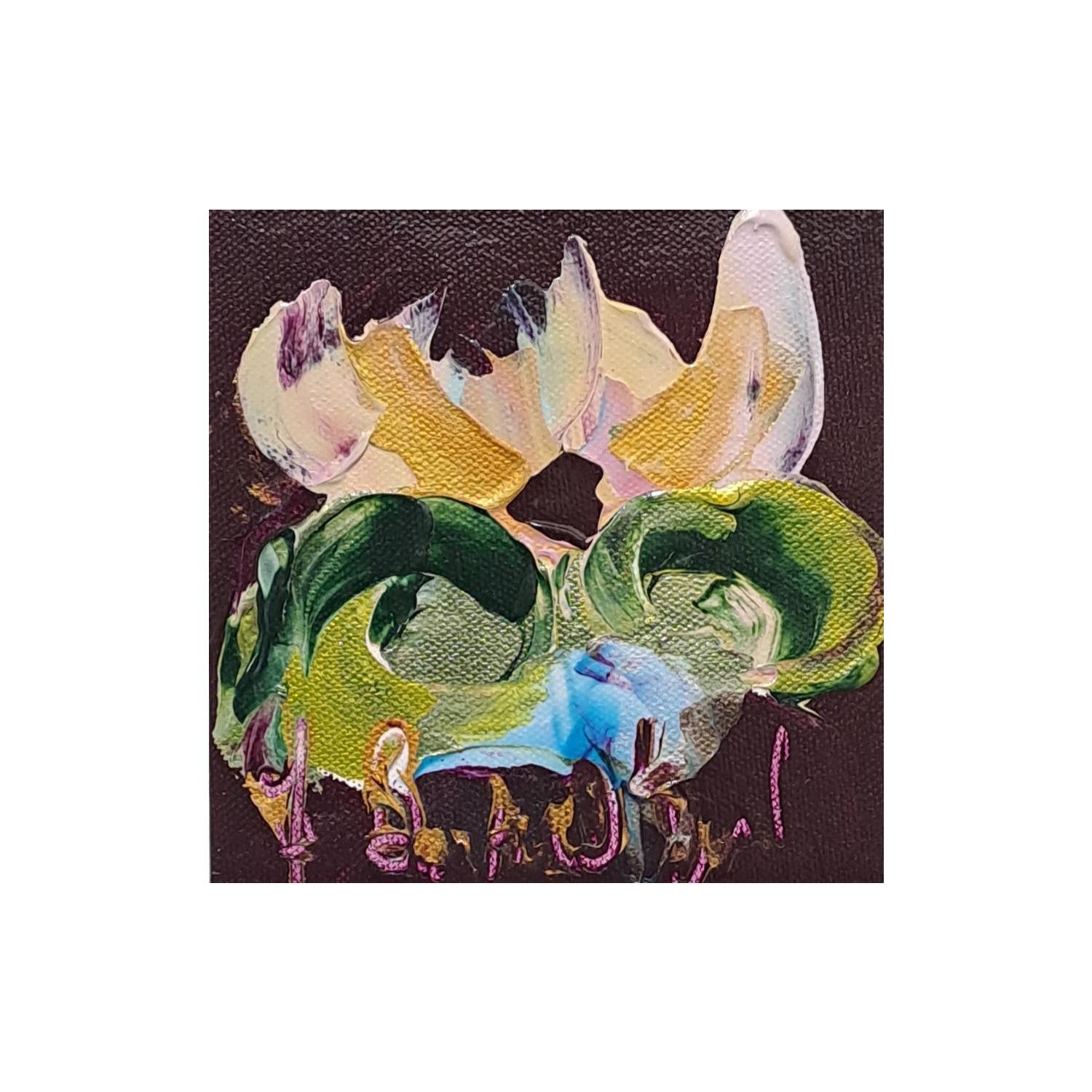 This unique and original contemporary artwork "Nymphea sous fond prune" has been created by the contemporary artist Bastide d´Izard Armelle.