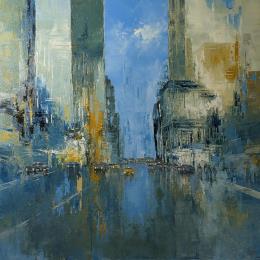 This unique and original contemporary artwork "Beautiful day in NY" on the subjects of Landscapes, Urban has been created by the contemporary artist Dessein Pierre.