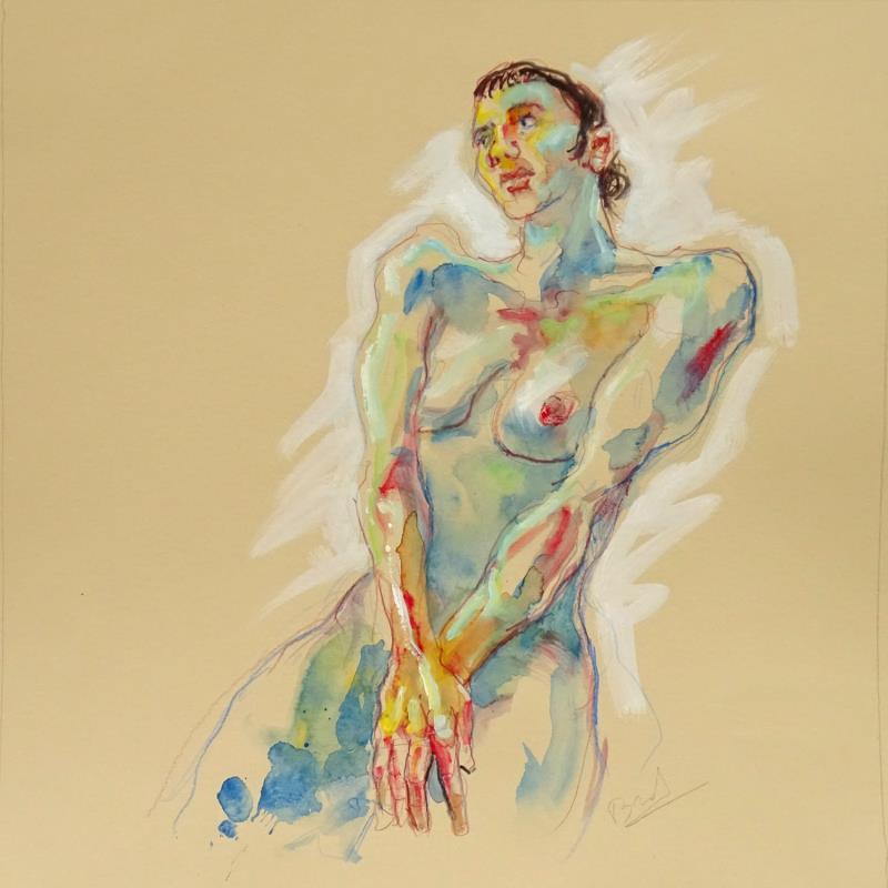 Genna mains croiséesPintura Genna mains croisées por Brunel Sébastien | Pintura Figurative Nude Watercolor