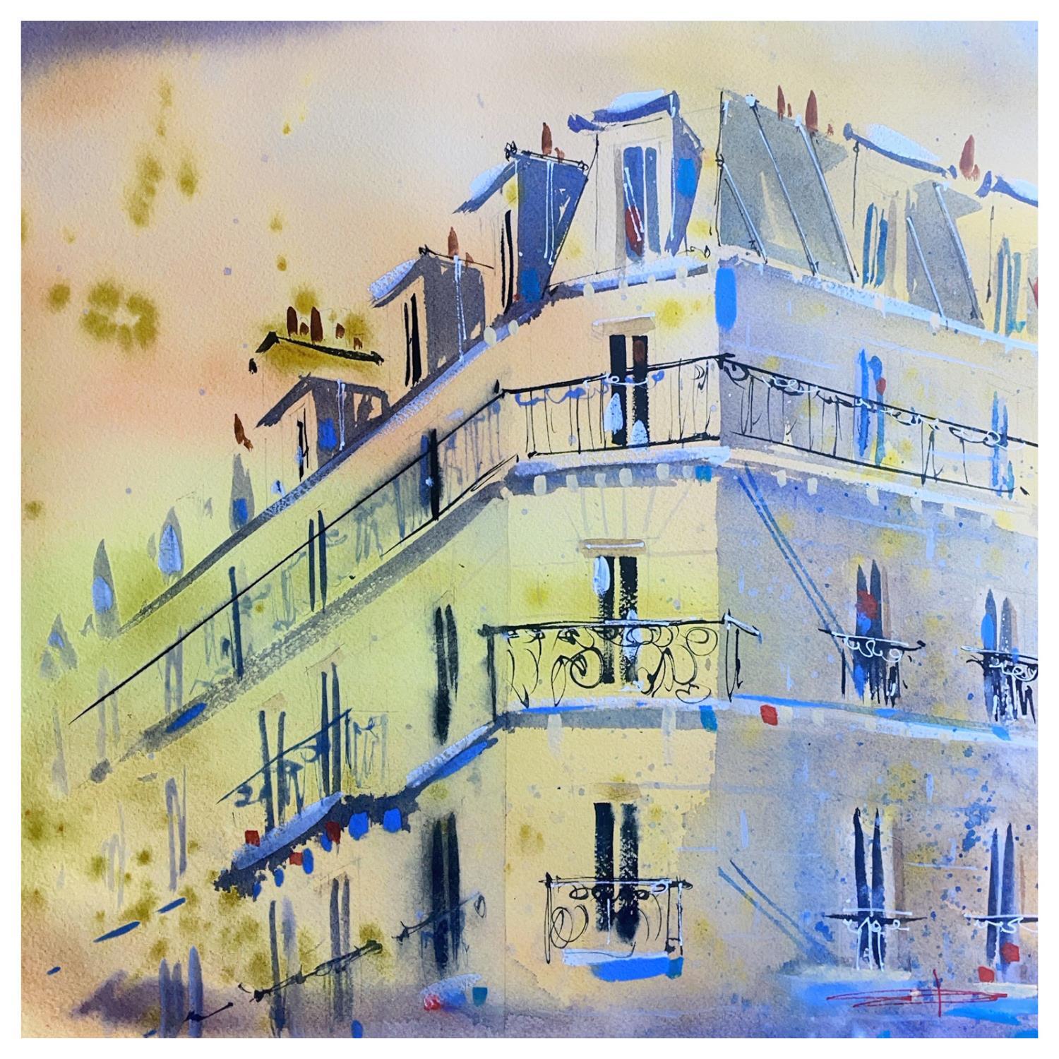 Architecture parisiennePintura Architecture parisienne por Bailly Kévin  | Pintura Figurative Urban Architecture Watercolor Ink
