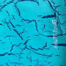 A passionate and hard worker, she draws us into a mineral and raw world through her mixtures of pigments. Her metallic colors, golden, copper, rusty, are organized in a cracked and uneven rendering, filled with delicacy, poetry and serenity.