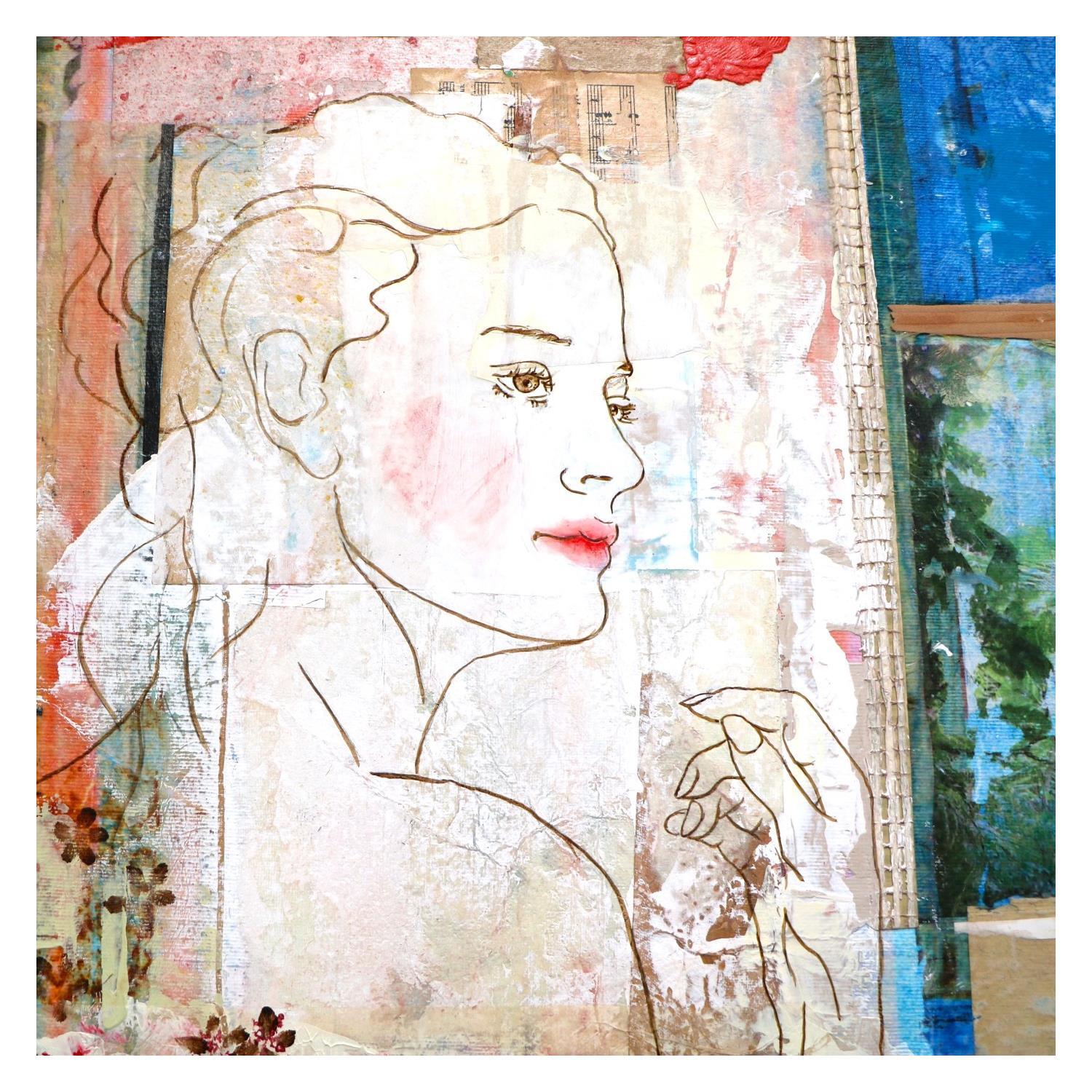 AME de TAFFETASPintura AME de TAFFETAS por Sablyne | Pintura Raw art Portrait Life style Graffiti Wood Acrylic Gluing Ink Pastel Gold leaf Upcycling Paper Pigments