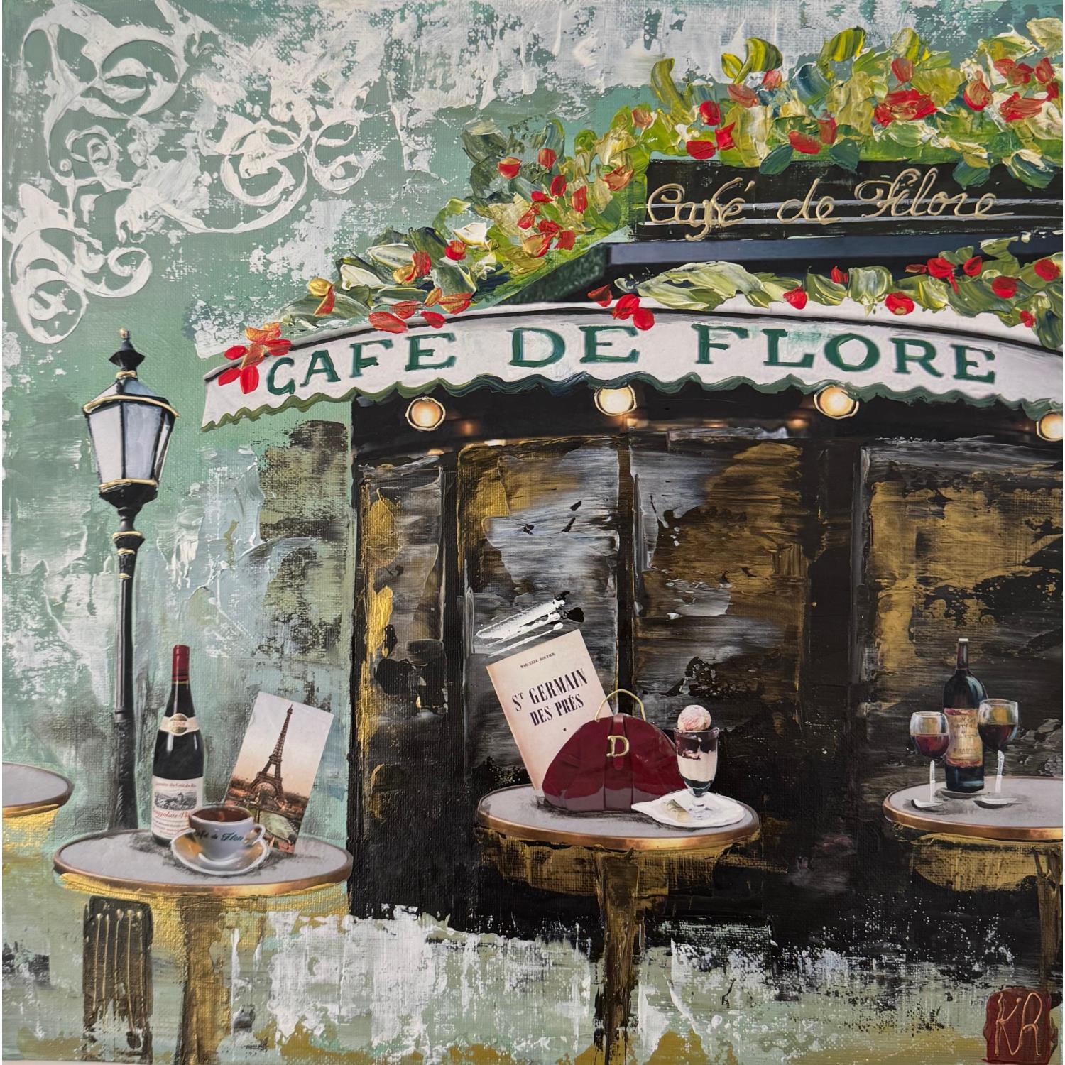 This unique and original contemporary artwork "Café de Flore" has been created by the contemporary artist Romanelli Karine.