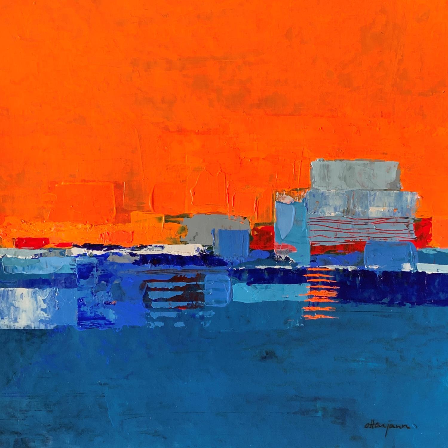 This unique and original contemporary artwork "Ville au bord de la mer" was created by contemporary artist Ottenjann Andrea.