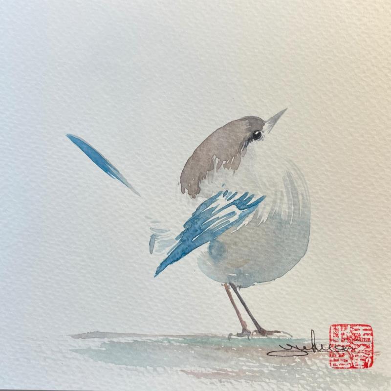 The artist used Watercolor, Ink media on Paper to create this Figurative, Small size painting.