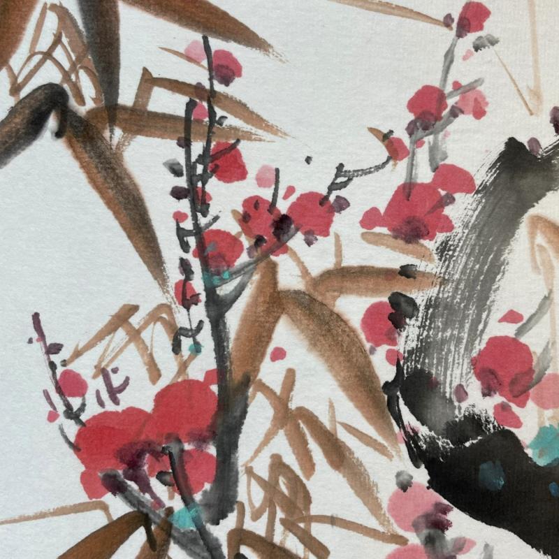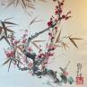 This unique and original contemporary artwork "Cherry blossom and bamboo" on the subject of Nature has been created by the contemporary artist Yu Huan Huan.
