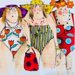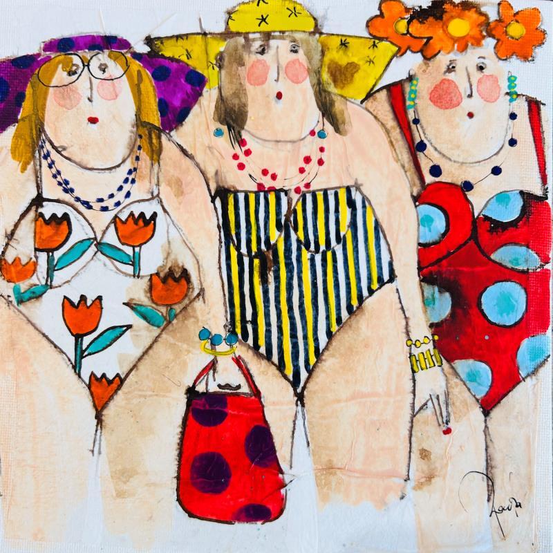 The artist used Acrylic, Watercolor, Gluing, Ink, Pastel media on Canvas to create this Naive art, Small size painting.