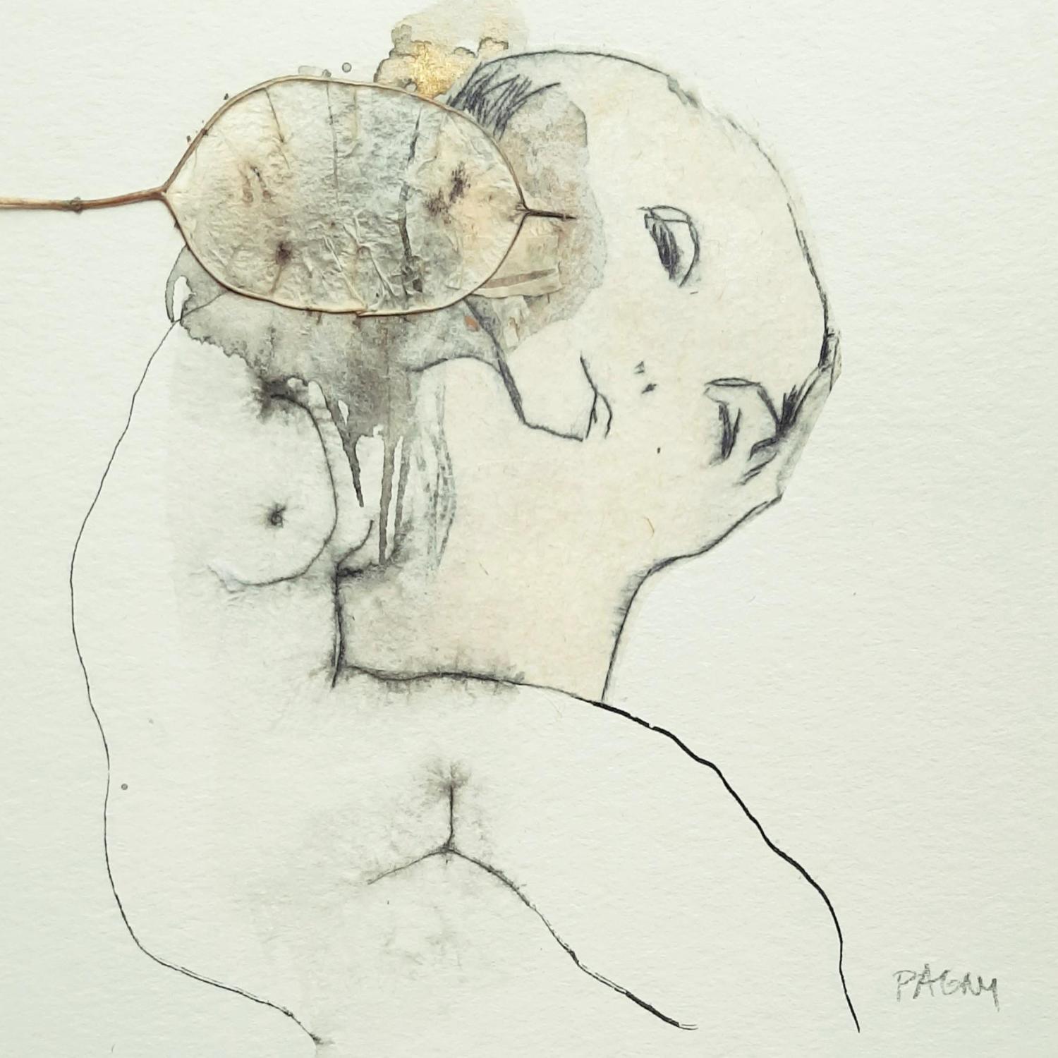 The artist used the Ink and Etching technique to create this small-format painting on Paper in the Art Singulier style on the theme of Nude.