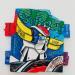 The artist used Acrylic, Wood, Posca media on Wood to create this Pop-art, Small size painting.