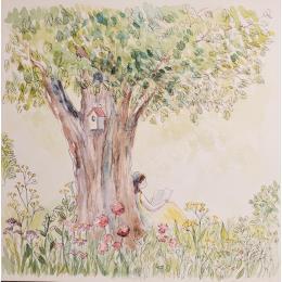 Pintura Sous le chêne por Balme Delphine | Pintura Naive art Watercolor