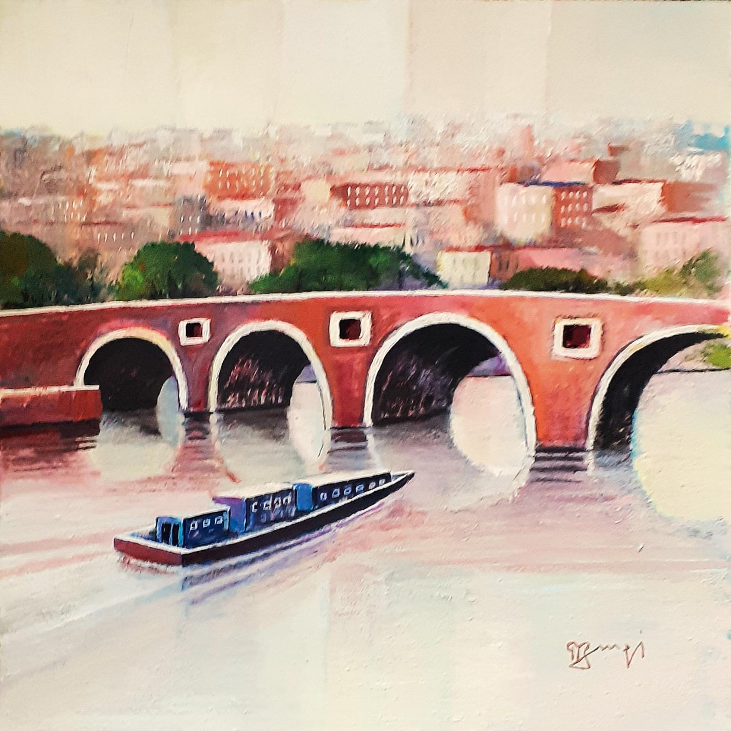 This unique and original contemporary artwork "AR19 TOULOUSE, LA PENICHE BLEUE" on the subjects of Marine, Landscapes, Urban has been created by the contemporary artist Burgi Roger.