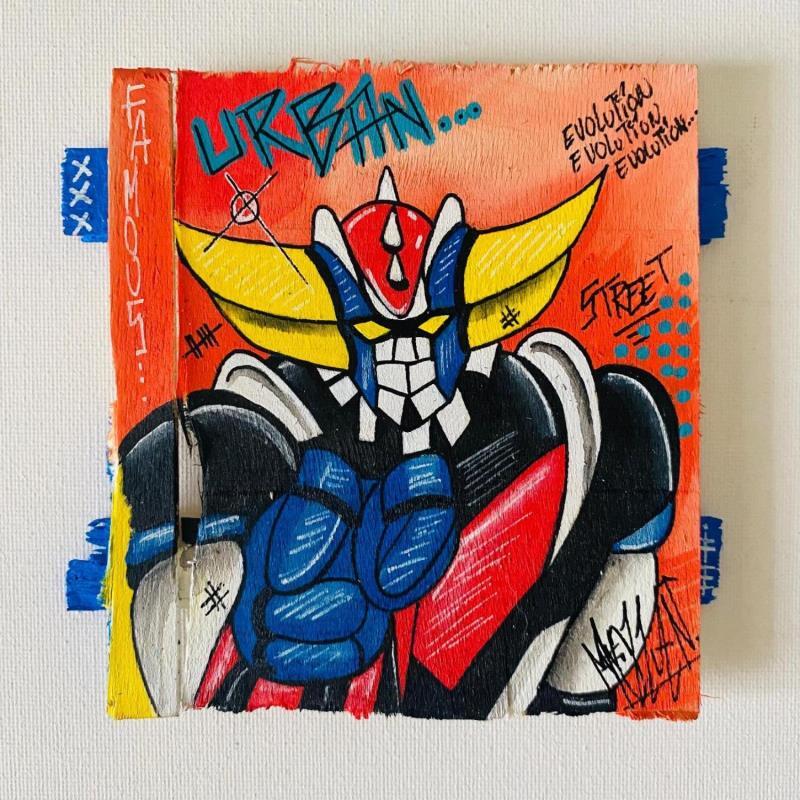 The artist used Acrylic, Wood, Posca media on Wood to create this Pop-art, Small size painting.