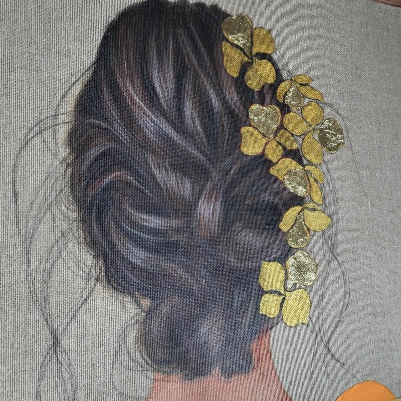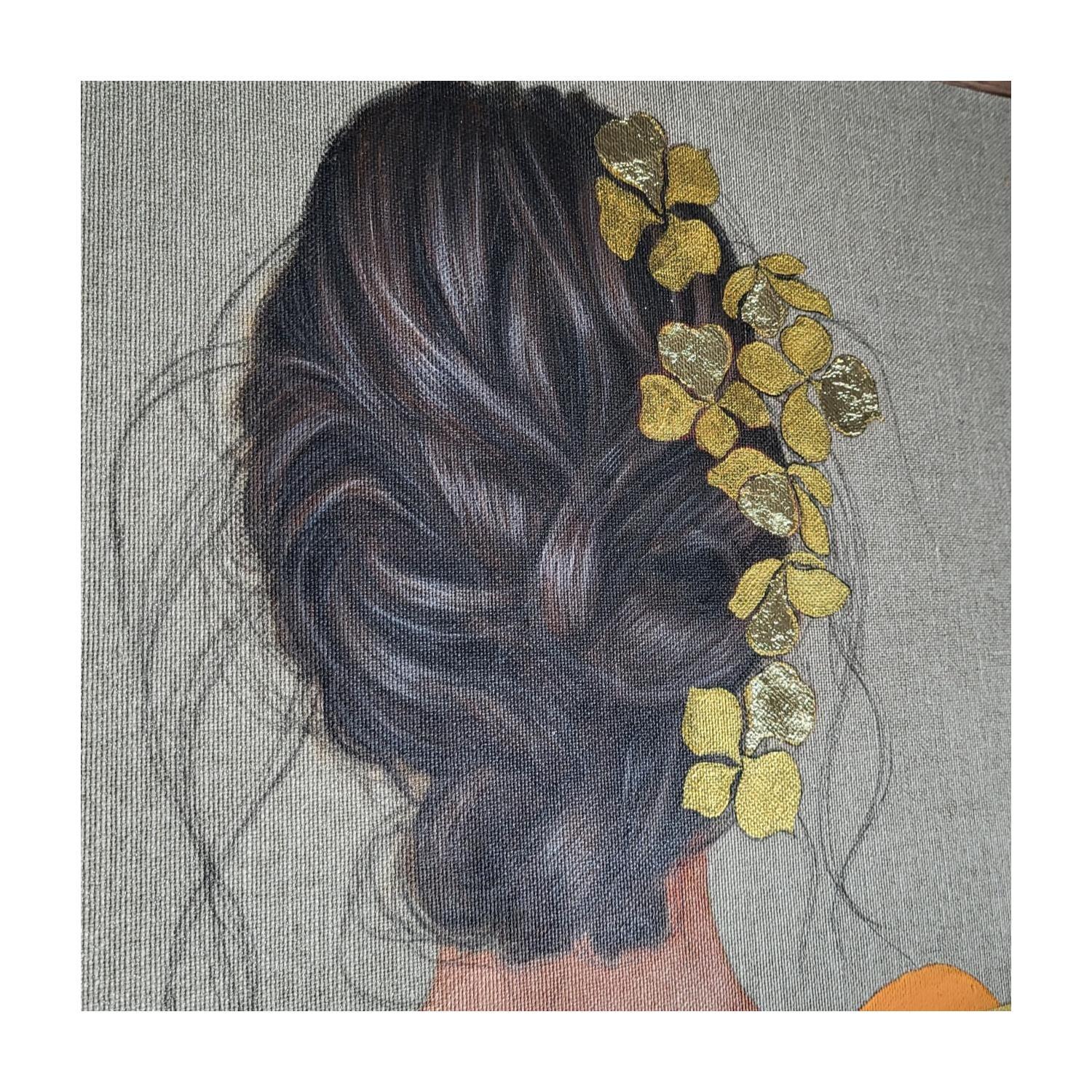 The artist used Acrylic, Gold leaf media on Canvas to create this Figurative, Small size painting.