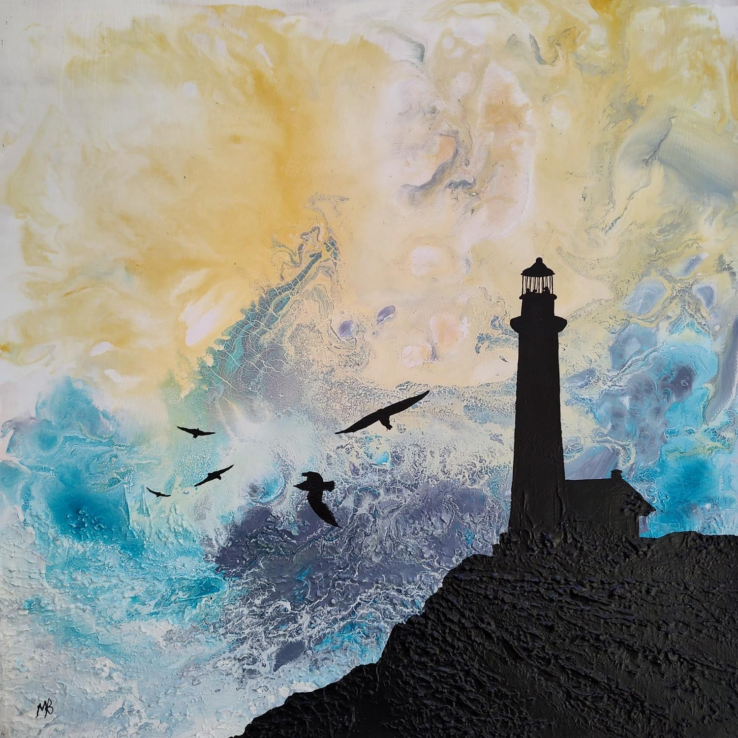 This unique and original contemporary artwork "Lumière sur le phare" on the subject of Landscapes has been created by the contemporary artist Blandin Magali.