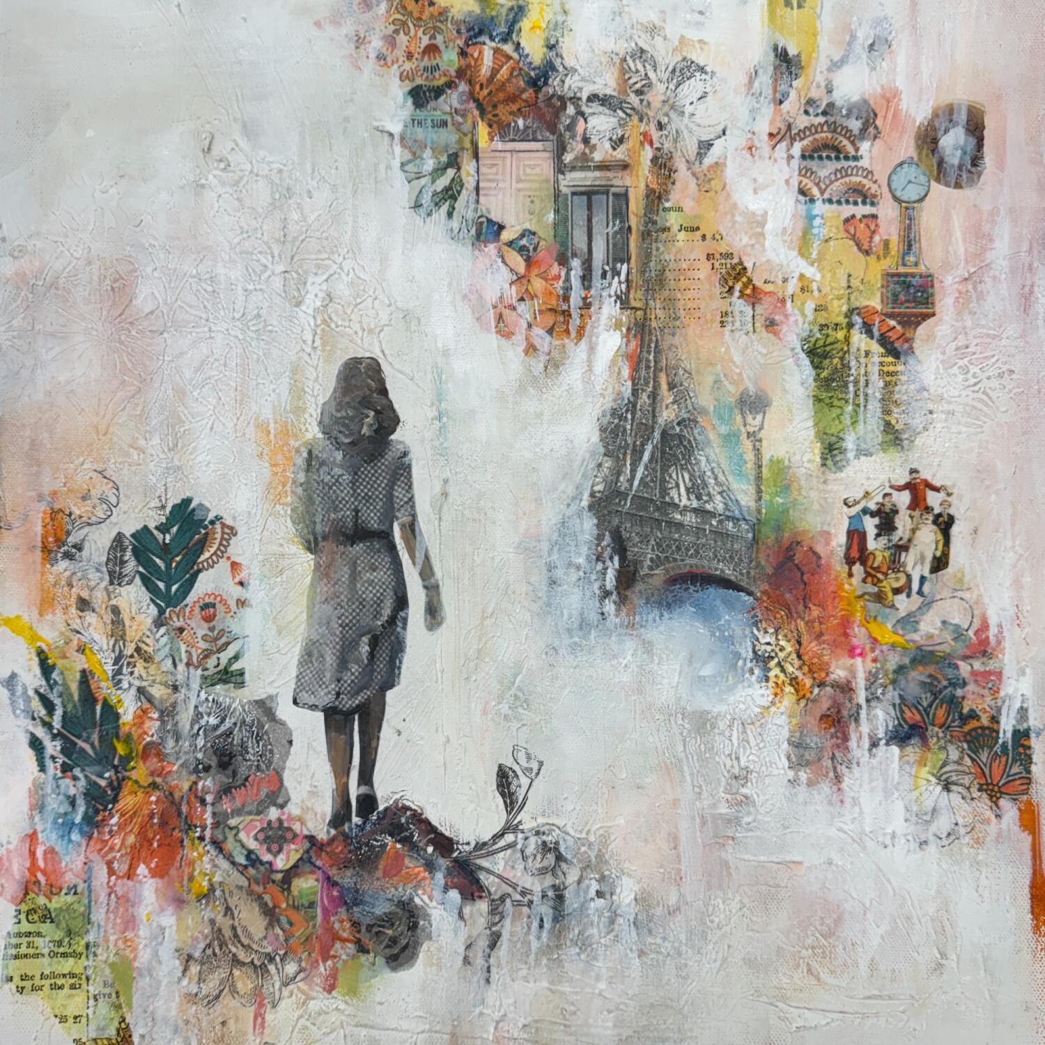 This unique and original contemporary work of art "Entre Paris et l'autre bout du monde" was created by contemporary artist Bergeron Marie-Josée.