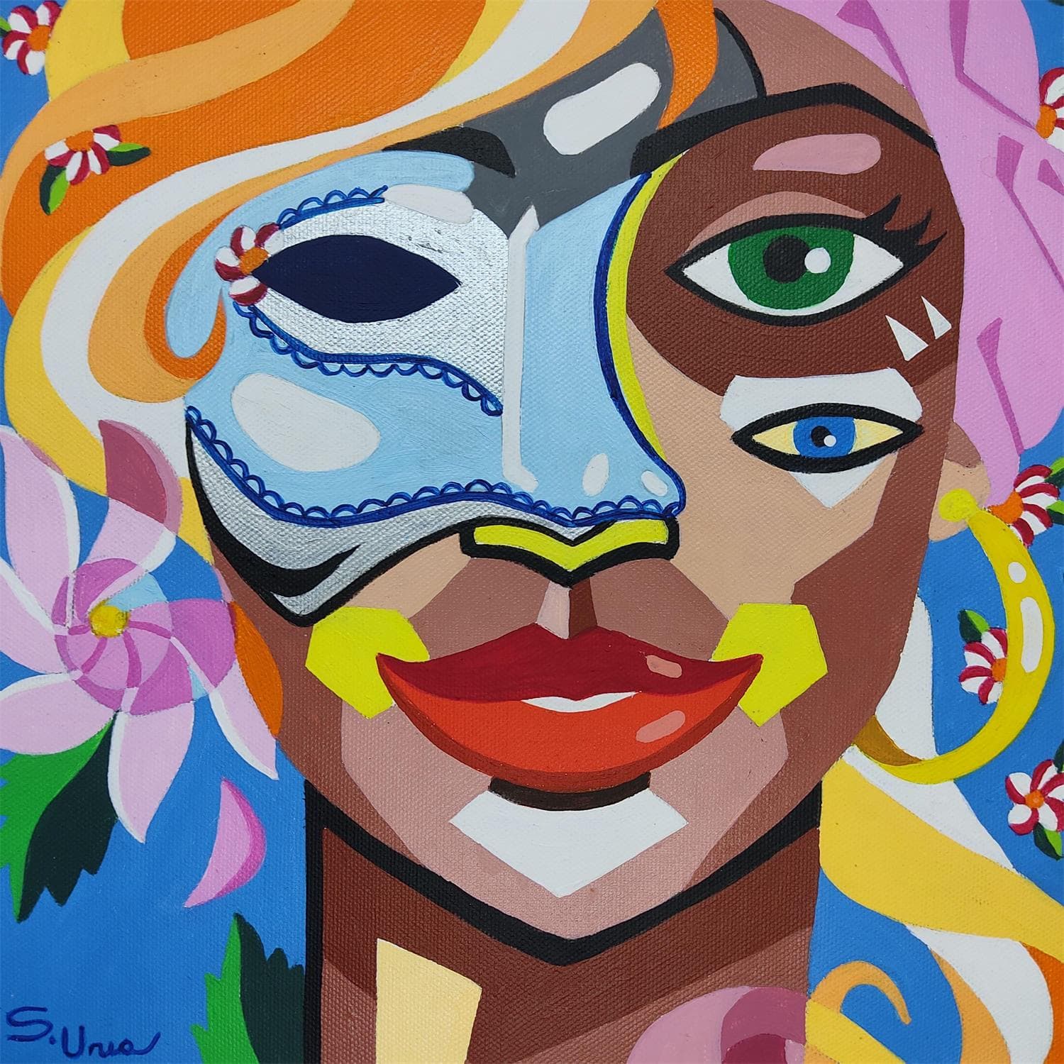 This unique and original contemporary artwork "LA MASCARA" on the subject of Portrait has been created by the contemporary artist S.Uria.