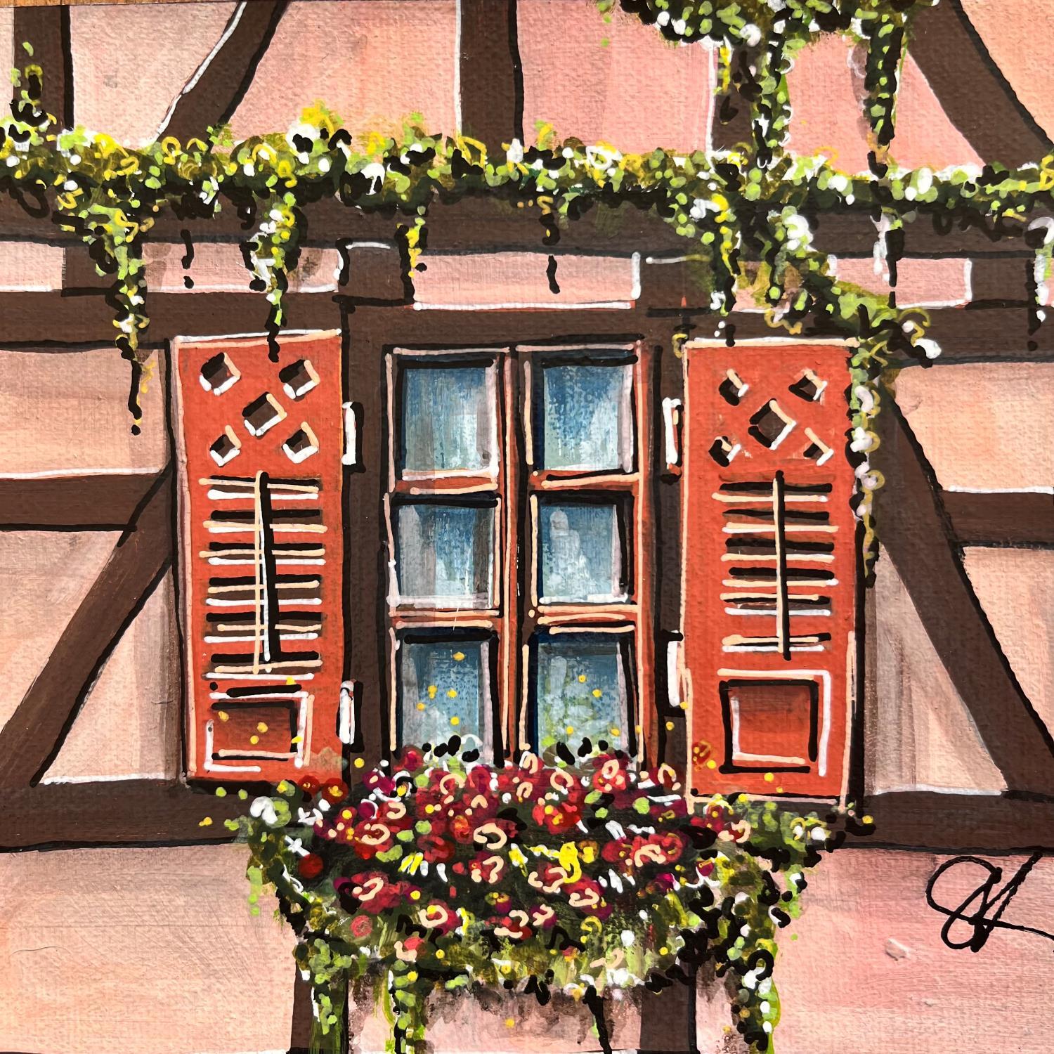This unique and original contemporary artwork "Fenêtre fleuries et colombages alsaciens" on the subject of Architecture has been created by the contemporary artist Touras Sophie-Kim .