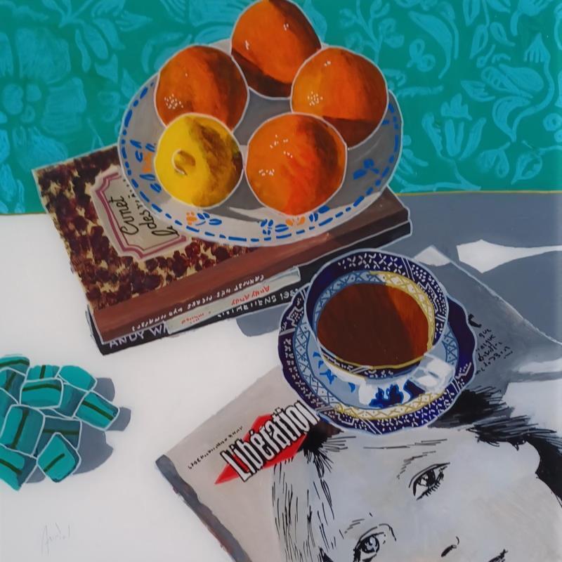 This unique and original contemporary artwork "Andy ne se remettait pas du départ de Marianne " on the subject of Still-life has been created by the contemporary artist Auriol Philippe.