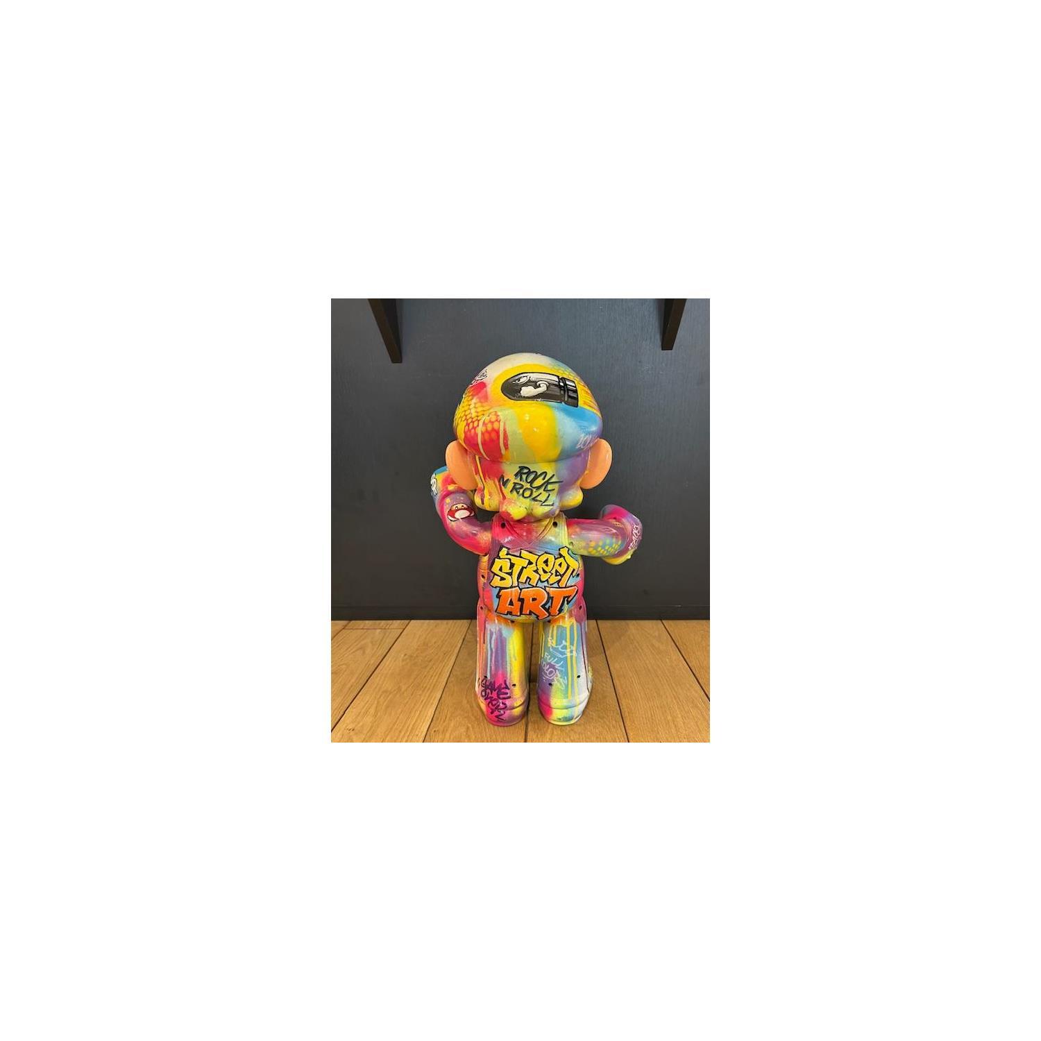 Spray-painted, acrylic paint and markers, ultra gloss varnish finish.