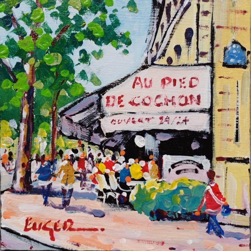 This unique and original contemporary artwork "TERRASSE QUARTIER DES HALLES A PARIS" on the subjects of Life style, Society, Urban has been created by the contemporary artist Euger.