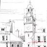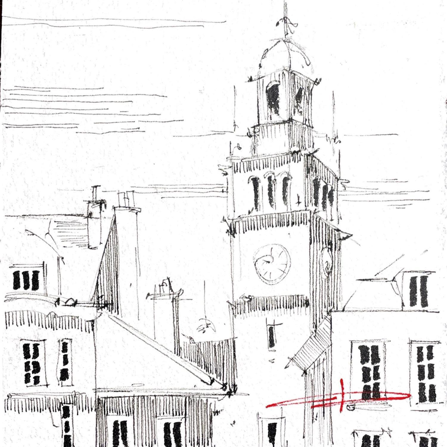 Pintura les toits et Beffroi de Lille por Bailly Kévin  | Pintura Figurative Urban Architecture Watercolor Ink