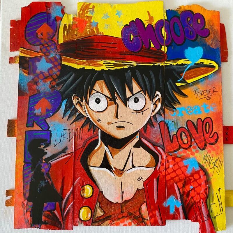 The artist used Acrylic, Wood, Posca media on Wood to create this Pop-art, Small size painting.