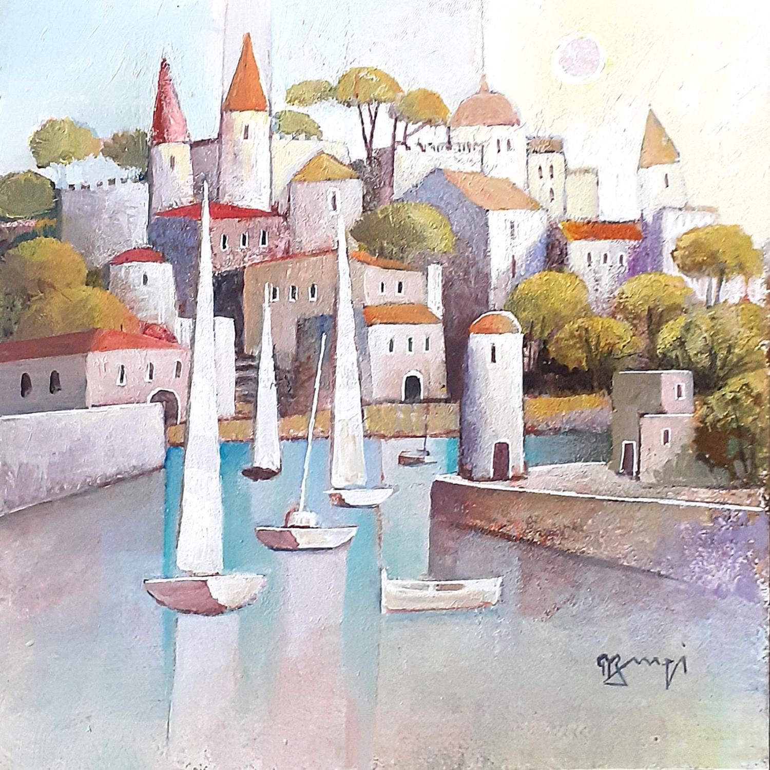 This unique and original contemporary artwork "AR48 LES DEUX TOURS" on the subjects of Marine, Landscapes, Urban has been created by the contemporary artist Burgi Roger.