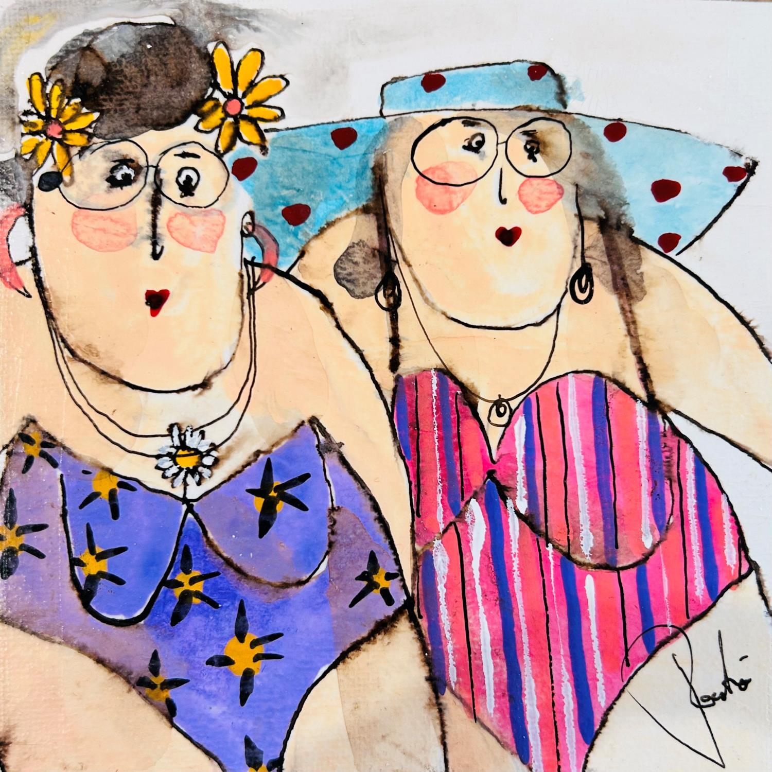 This unique and original contemporary artwork "Marcelle et noelle" on the subject of Portrait has been created by the contemporary artist Colombo Cécile.