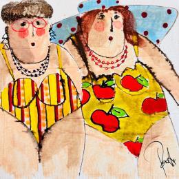 This unique and original contemporary artwork "Marguerite et Cerise" on the subjects of Portrait, Life style has been created by the contemporary artist Colombo Cécile.