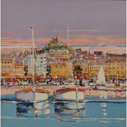 This unique and original contemporary artwork "Reflets du Vieux Port" on the subjects of Landscapes, Marine has been created by the contemporary artist Corbière Liisa.
