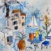Terrasse aux mimosasPintura Terrasse aux mimosas por Colombo Cécile | Pintura Naive art Landscapes Marine Nature Watercolor Acrylic Gluing Ink Pastel