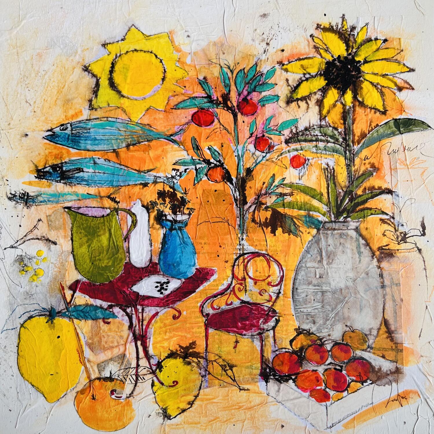 This unique and original contemporary artwork "Barcelona orange" on the subjects of Landscapes, Life style, Nature has been created by the contemporary artist Colombo Cécile.
