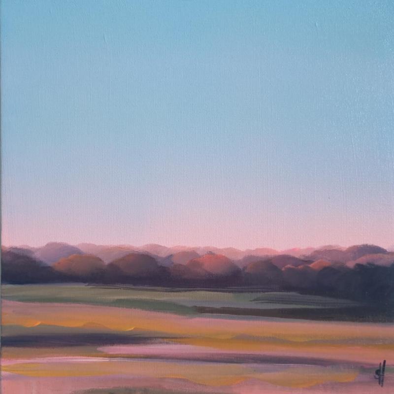 This unique and original contemporary artwork "FLOWER FIELDS IN THE MORNING" on the subject of Landscapes has been created by the contemporary artist Svenja Herz.