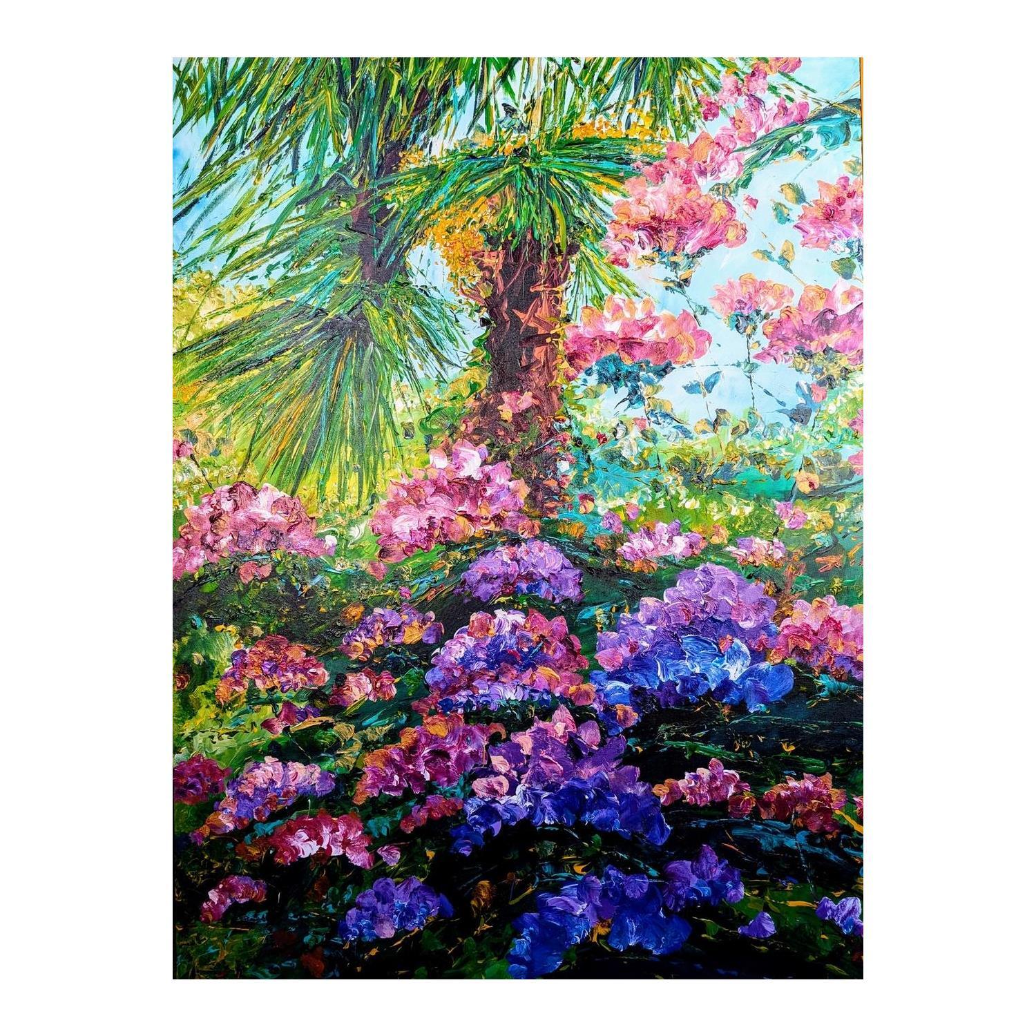 This unique and original contemporary artwork "Rhodo au pied du palmier" has been created by the contemporary artist Amblard Florence.