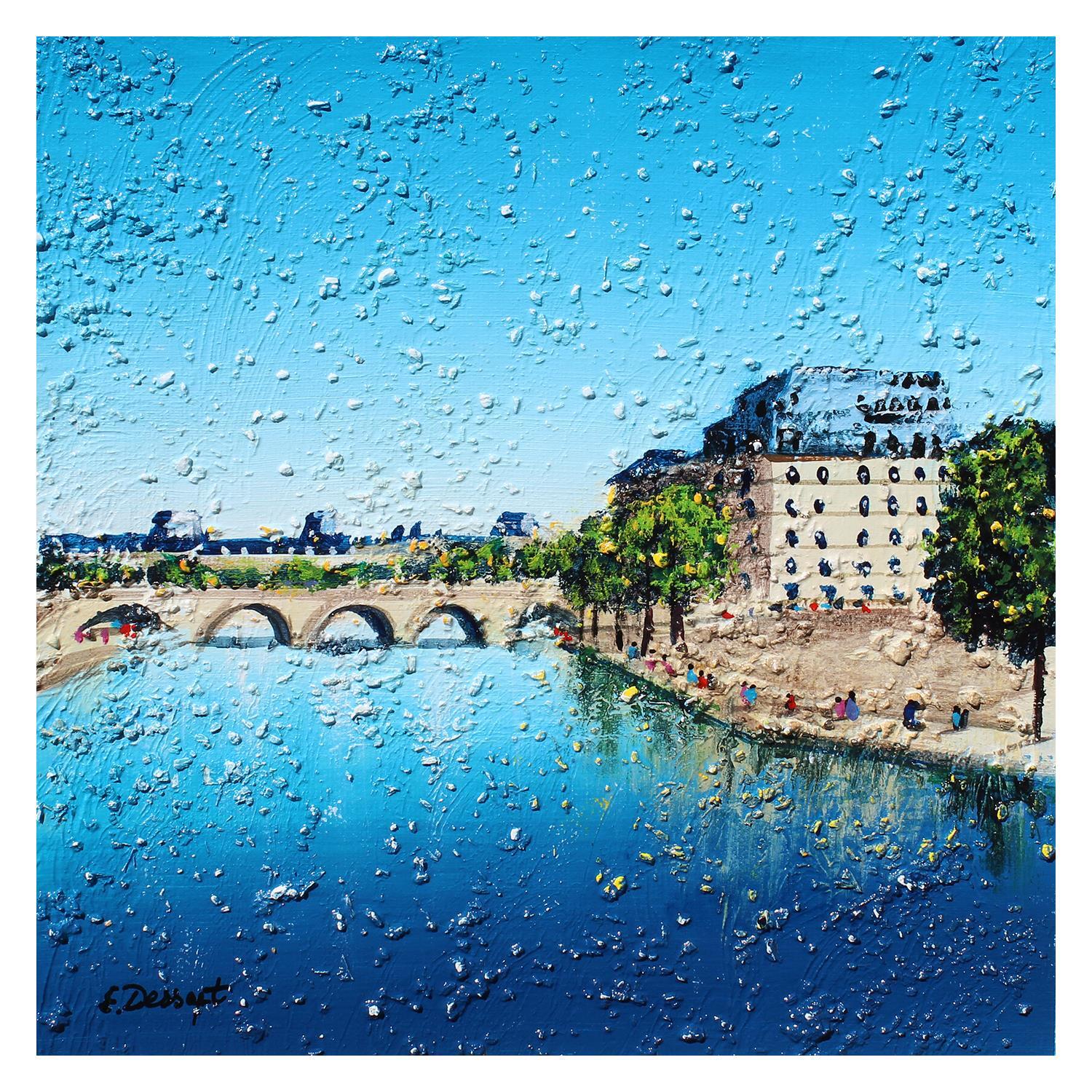 This unique and original contemporary artwork "La Seine et le pont neuf" was created by contemporary artist Dessapt Elika.