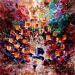 Le concert avec pianiste is a work that oscillates between abstraction in the periphery and naive art in the center and the representation of the instrumentalists. The motif is painted in knife and oil, and plays on a harmony of warm colors (shades of red, orange) and metallics (gold, copper, silver...). The square heads of the figures are inspired by Nicolas de Staël's "Parc des Princes" series. The staging highlights the central pianist, playing on circularity (the formation) and verticality (the background). The conductor, isolated and in a masterly posture, concludes the lower part of the work. The overall tone is flamboyant or baroque... depending on your sensibilities.