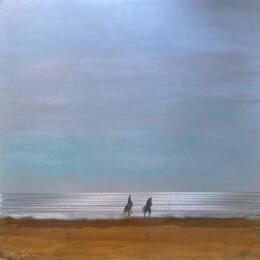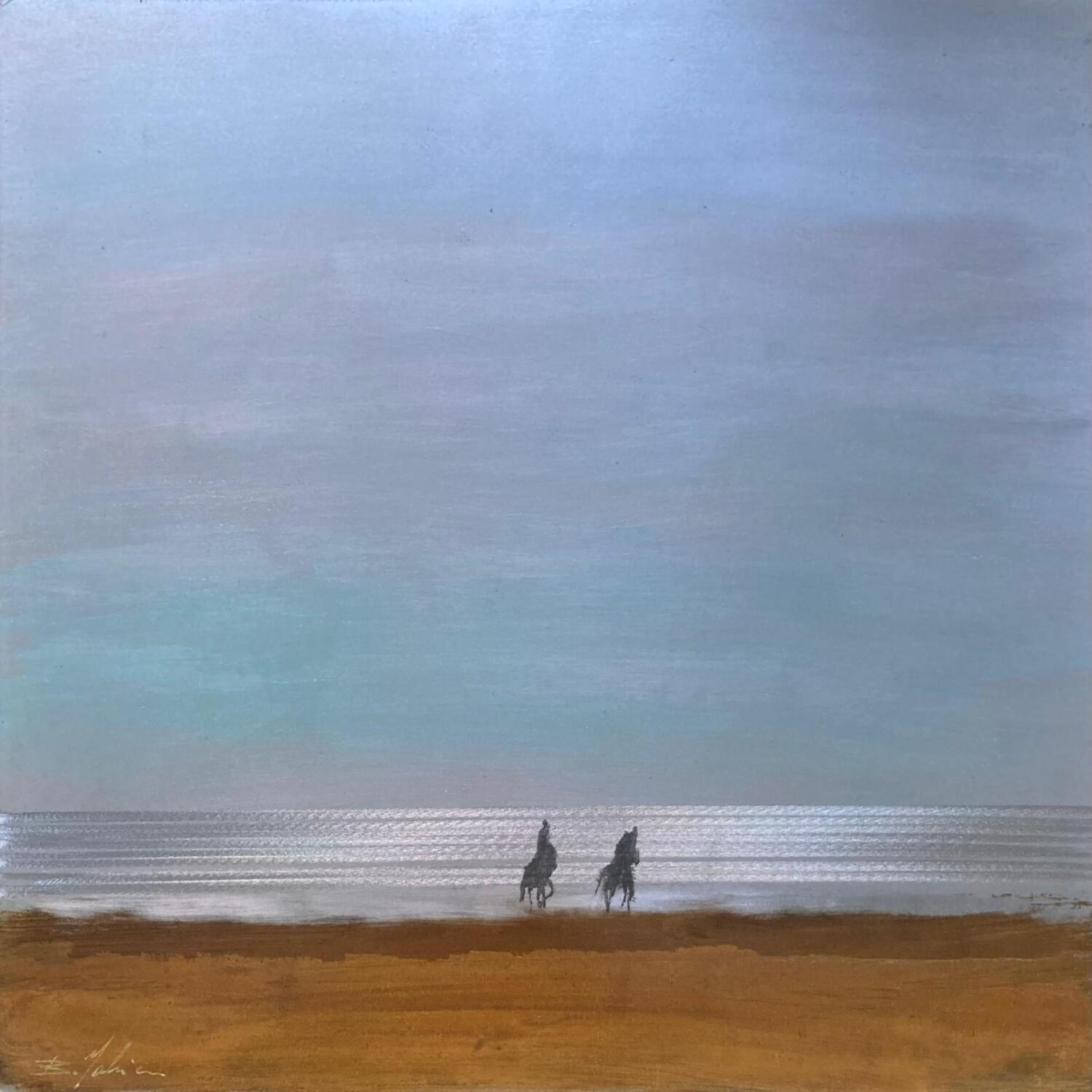 Pintura Chevaux devant la mer por Mahieu Bertrand | Pintura Figurative Landscapes Metal