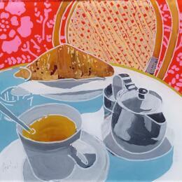 This unique and original contemporary artwork "C'était un lundi aux couleurs du bonheur" on the subject of Still-life has been created by the contemporary artist Auriol Philippe.
