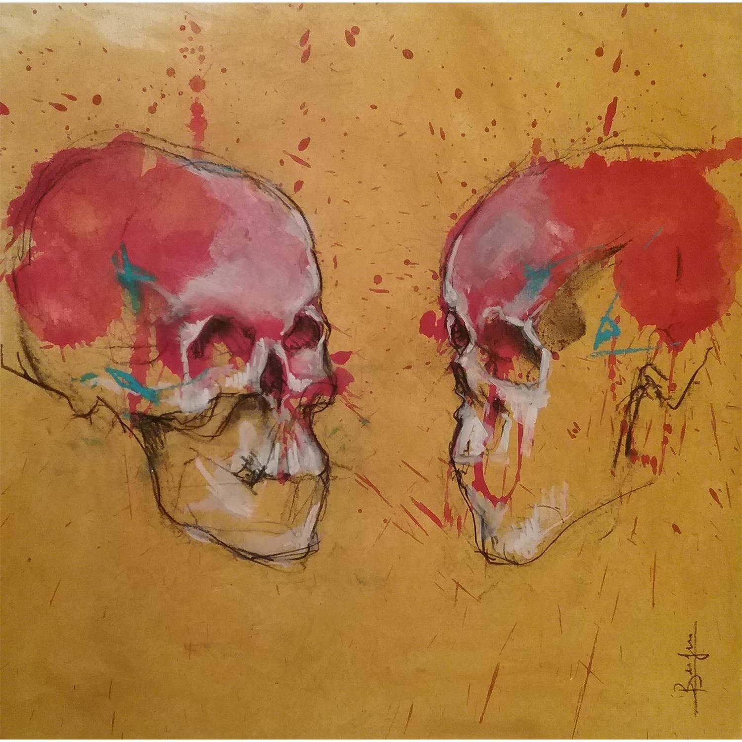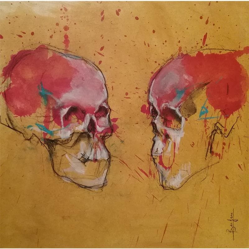 This unique and original contemporary artwork "Carton d'étude : 2 vanités" on the subject of Portrait has been created by the contemporary artist Bergues Laurent.