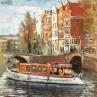 This unique and original contemporary artwork "A walk along the canals of Amsterdam" on the subject of Urban has been created by the contemporary artist Niko Marina .